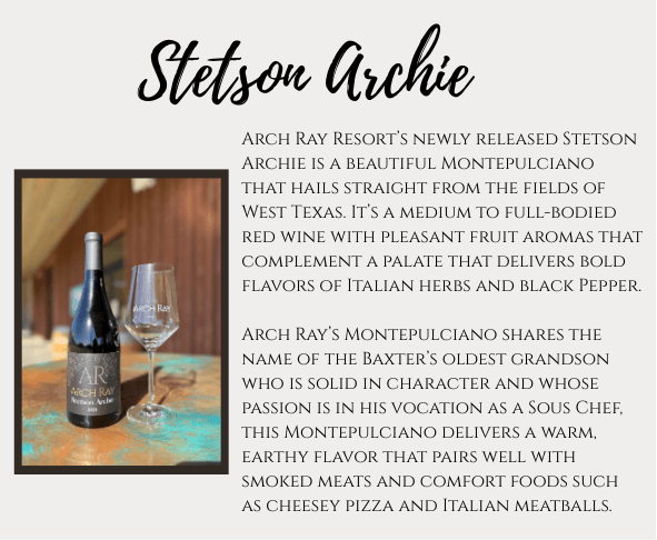 Come into Arch Ray Resort and try one our newly released wines! Experience all that Arch Ray Resort has to offer and step into our story, an unfolding legacy where heritage and wine collide.