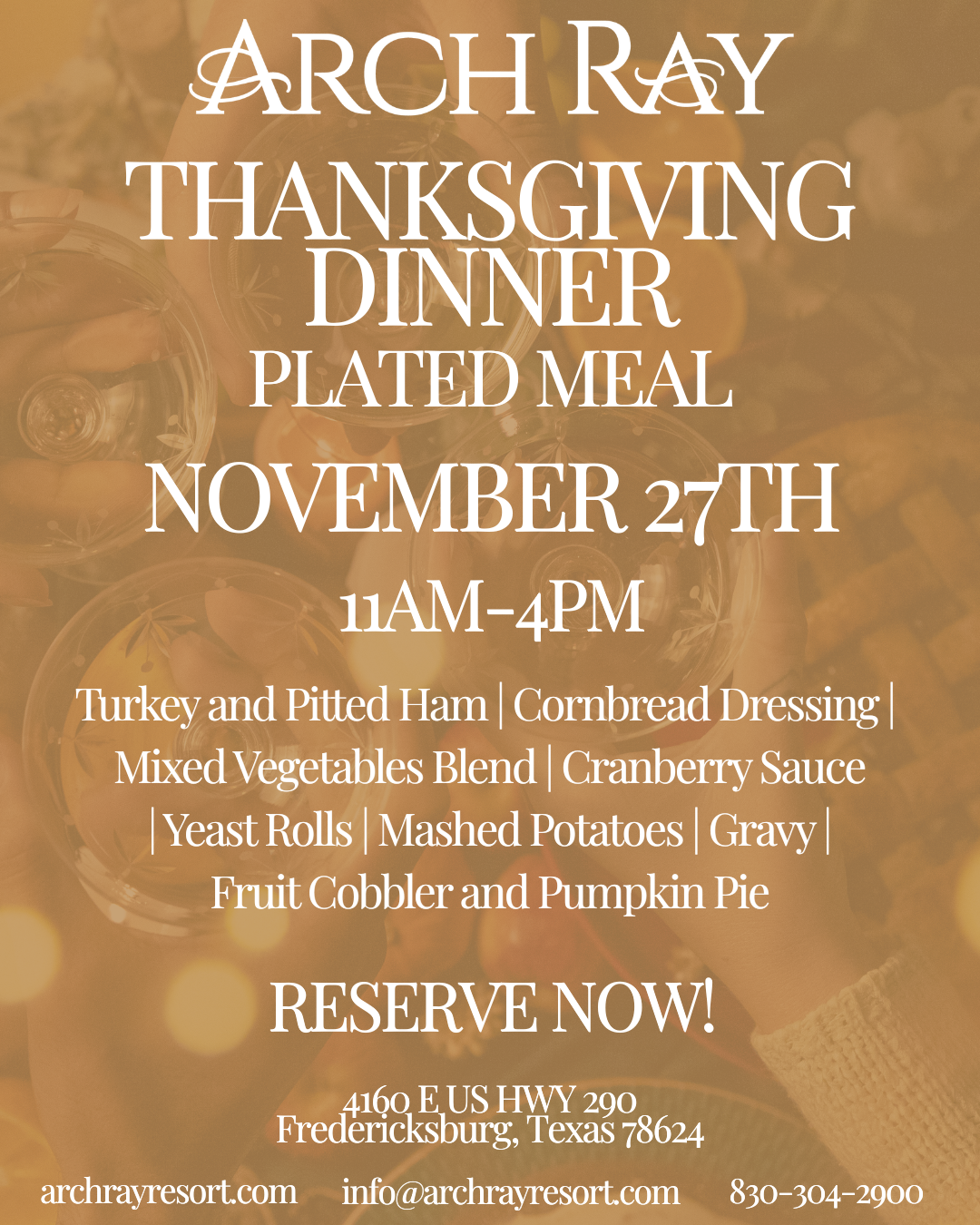 Tickets We want to welcome you this Thanksgiving Day to enjoy your holiday at Arch Ray Resort! Seating is limited, so be sure to reserve your spot in advance. Purchase your tickets and choose your preferred time frame. Your selected time frame indicates your preferred seating hour. Your specific reservation time will be confirmed via […]
