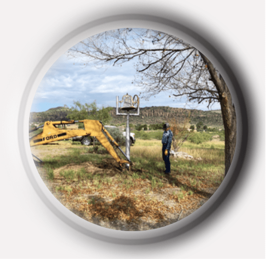 Though the adventure in Oregon proved to be a short season in the lives of the Baker family (Sally’s immediate family) and the vision for a seaside villa eventually faded into the past, the bell became a generational staple that sojourned alongside the family wherever they roamed. Following Ray’s passing in Independence, the bell arrived back in Texas when Clarice headed back to her beloved homeland. When it arrived in the Lone Star State, it was placed on the property at Betty Baker’s (Clarice’s daughter/Sally’s mother) home in Coyanosa, Texas where Betty served as the post master for many years. From there the metallic ornament moved on to Betty’s final home in Fort Davis and finally on to Bend, Texas where it remains today, still standing tall at the Baxter Ranch where Sally and her husband, Steve, reside. In 2018, when Betty Baker passed away, her ashes were spread under the towering monolith. The family relic became a symbolic monument that brought a perpetual attention the generations of the Ogles who have come and gone while, at the same time, breathing a new wave of family heritage into the future generations.